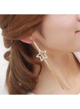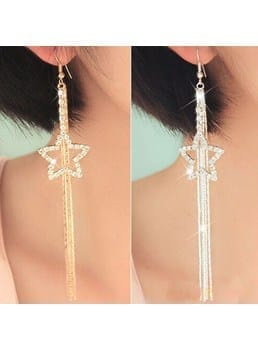 2 PCS Alloy Fashion Tassel Rhinestone Five-pointed Star Pendant  Earrings