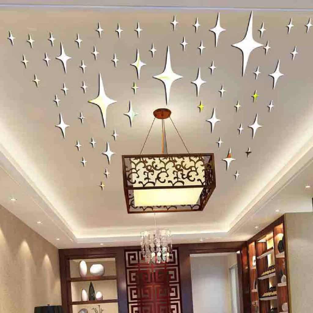 3d Mirror Wall Stickers Acrylic Stars, Diy Ceiling TV Wall Stickers Home Decor Wall Stickers Home Decor (Gold)