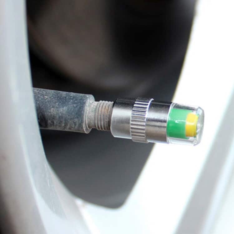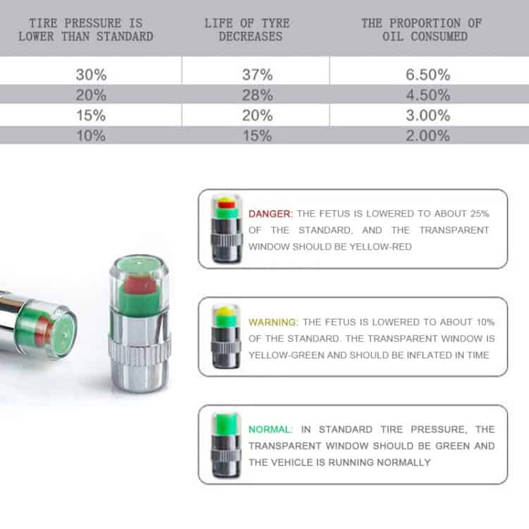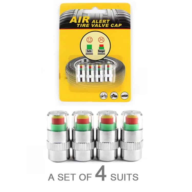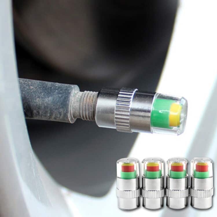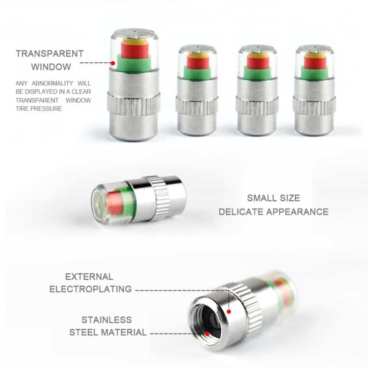4pcs 2.4 Bar Tire Pressure Monitor Valve Stem Caps Motorcycle Car Sensor Indicator Alert (Silver)