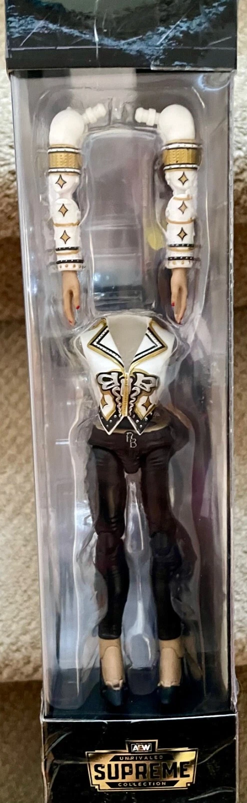 The AEW Unrivaled Supreme Collection “Dr. Britt Baker” 7″ Action Figure (13 Pieces) is recommended for ages 8 and up.