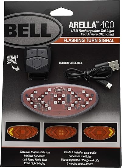 The Bell Sports Arella 400 is a perfect light for anyone who commutes to work or frequently rides their bike on roads. The Arella 400 not only functions as a steady and flashing tail light, but also has a sequential turn signal mode. The wireless remote control fits snugly on your handlebars, while the tail light is designed to fit nearly any size seat post, its simple, silicone strap mount makes it easy to put on and a flash to remove when you reach your destination. All 3 modes can be controlled from the remote. Simply push the right arrow to signify a right turn or left arrow for left turn. This allows you to be extra visible on the rode not only to other riders but also cars. The Arella 400’s sophisticated design is USB rechargeable.