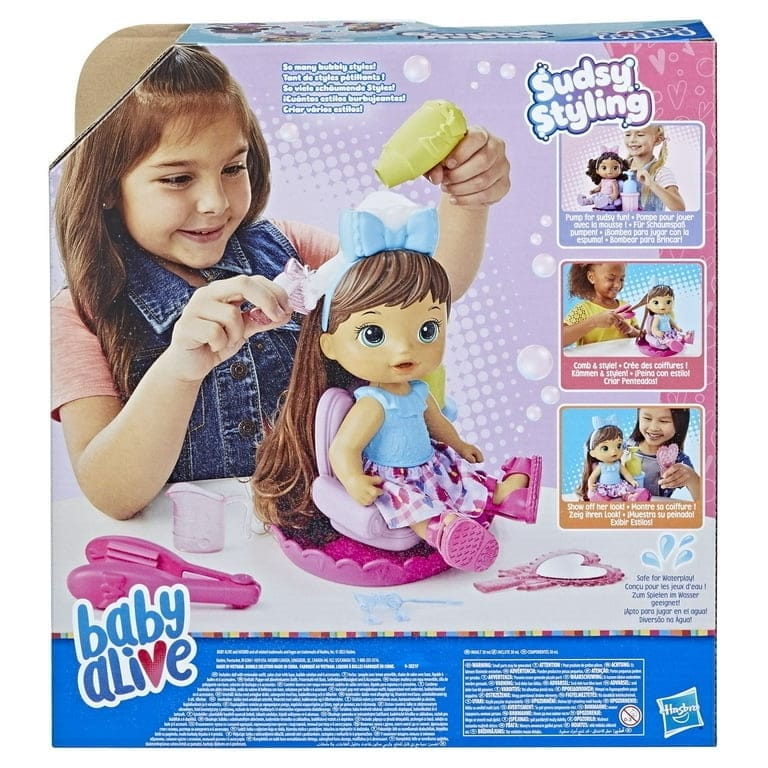 Baby Alive: Sudsy Styling 14-Inch Doll Brown Hair, Green Eyes Kids Toy for Boys and Girls