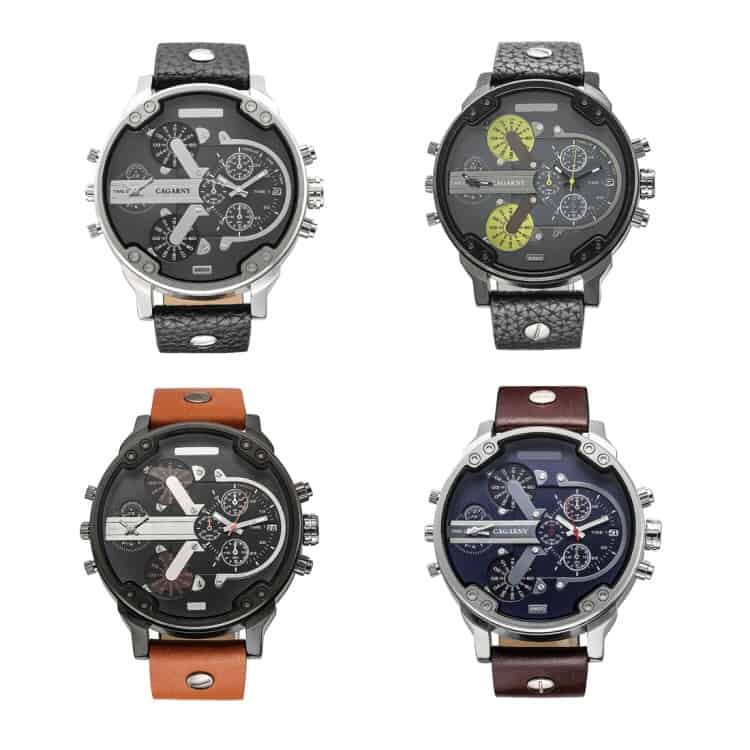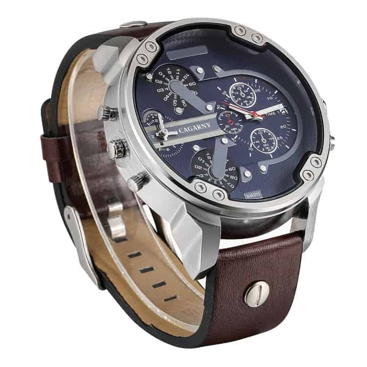CAGARNY 6820 Fashionable Multifunctional Style Quartz Business Sport Wrist Watch with Leather Band & GMT Time & Calendar & Luminous Display for Men (Brown)