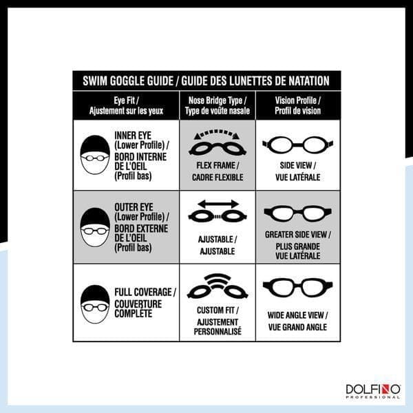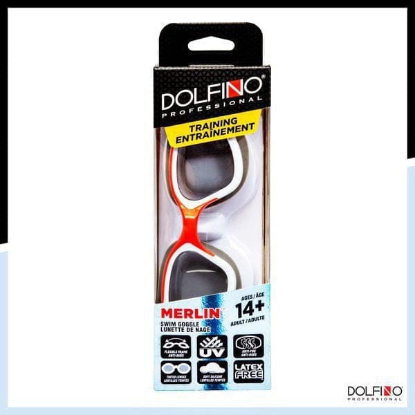 The Dolfino Pro Merlin Swim Goggles are the perfect, no-hassle swim training goggle. These goggles come with a textured, ultrasoft silicone head strap so you never have to worry about them slipping off in the water. The adjustable strap combined with the flexible frame make for a leak-free fit. Tinted, anti-fog lenses reduce glare and enhance visibility, while UV protection shields eyes from the sun’s harmful rays. The Merlin Swim Goggles are latex-free and hypoallergenic so you never have to worry about skin irritation. Recommended for ages 14 and up.