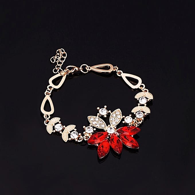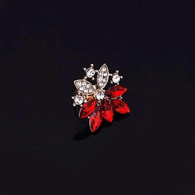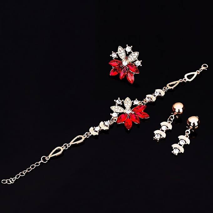 Fashion Diamond-shape Leaves Flowers Necklaces Rings Bracelets Earrings Jewelry Set 4 PCS for Women (Red)