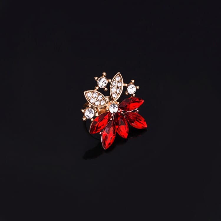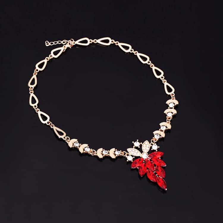 Fashion Diamond-shape Leaves Flowers Necklaces Rings Jewelry 2 PCS Set for Women (Red)