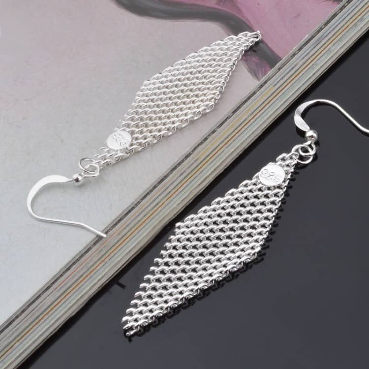 Fashion Queen Temperament Rhombus Mesh Earrings (Silver)