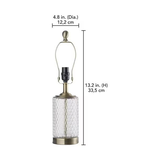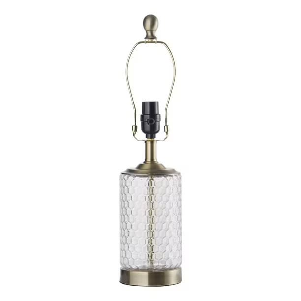 Make any space brighter with hometrends Table Lamp. Its base is made from clear glass with satin brass accents, featuring a classic, elegant design. Simply add the shade of your choice to complement the existing décor of any room and add light wherever you need it most. The ideal balance between style and function, it also has a convenient in-line switch to quickly and easily turn it on and off. From bedrooms to offices, living rooms and rec rooms, it’s the perfect lamp for any space, whether you’re lighting up your home desk or your bedside as you catch up on your nightly reading.