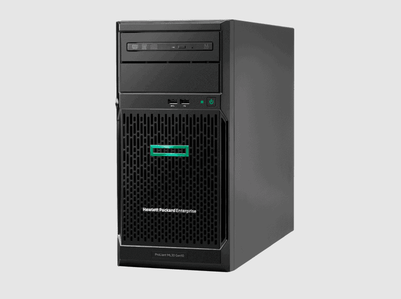 The HPE ProLiant ML30 Gen10 server, powered by up to 6 cores in the Intel Xeon E Processor and up to 64 GB of 2666 MT/s DDR4 ECC UDIMM, delivers abundant performance for small- to mid-sized business applications.