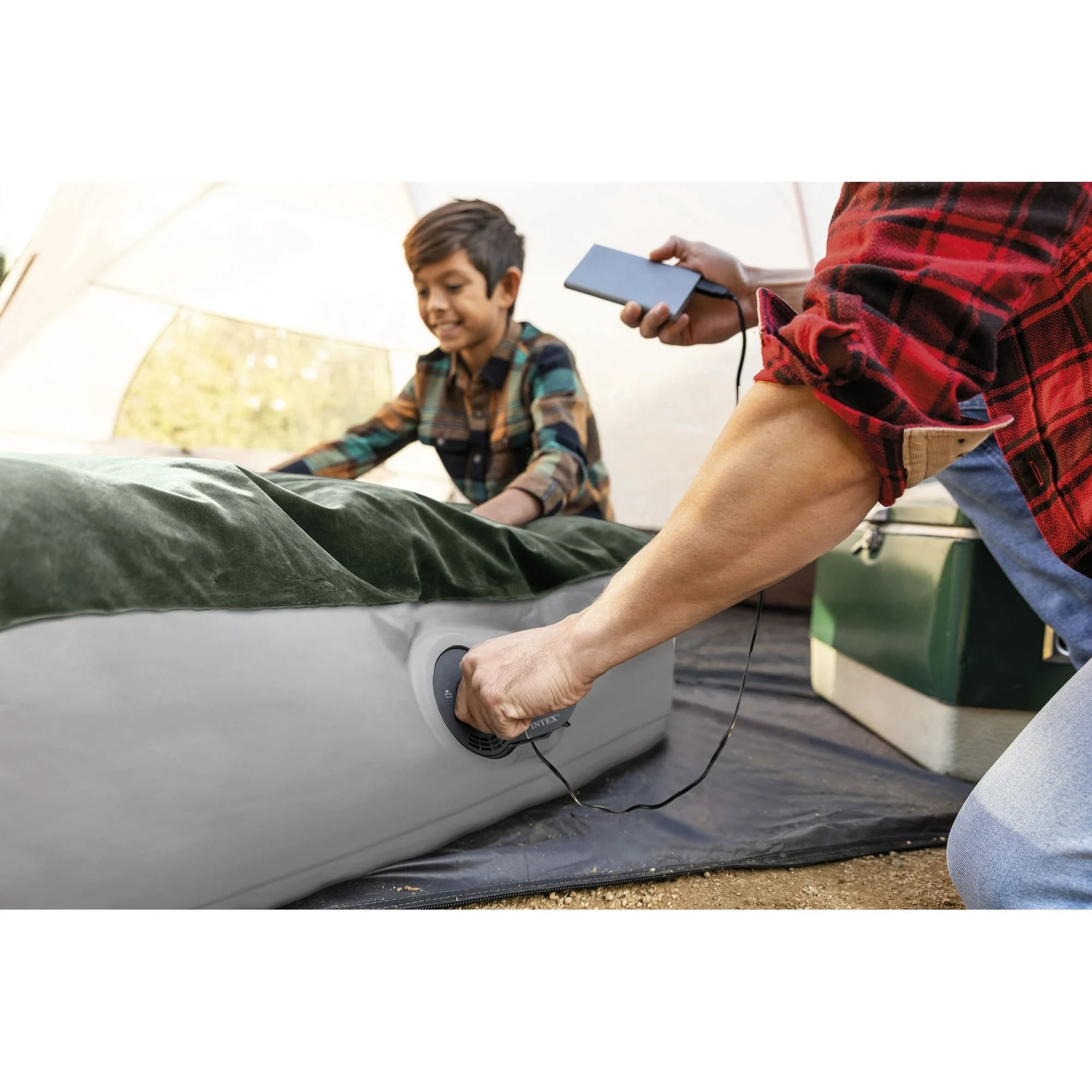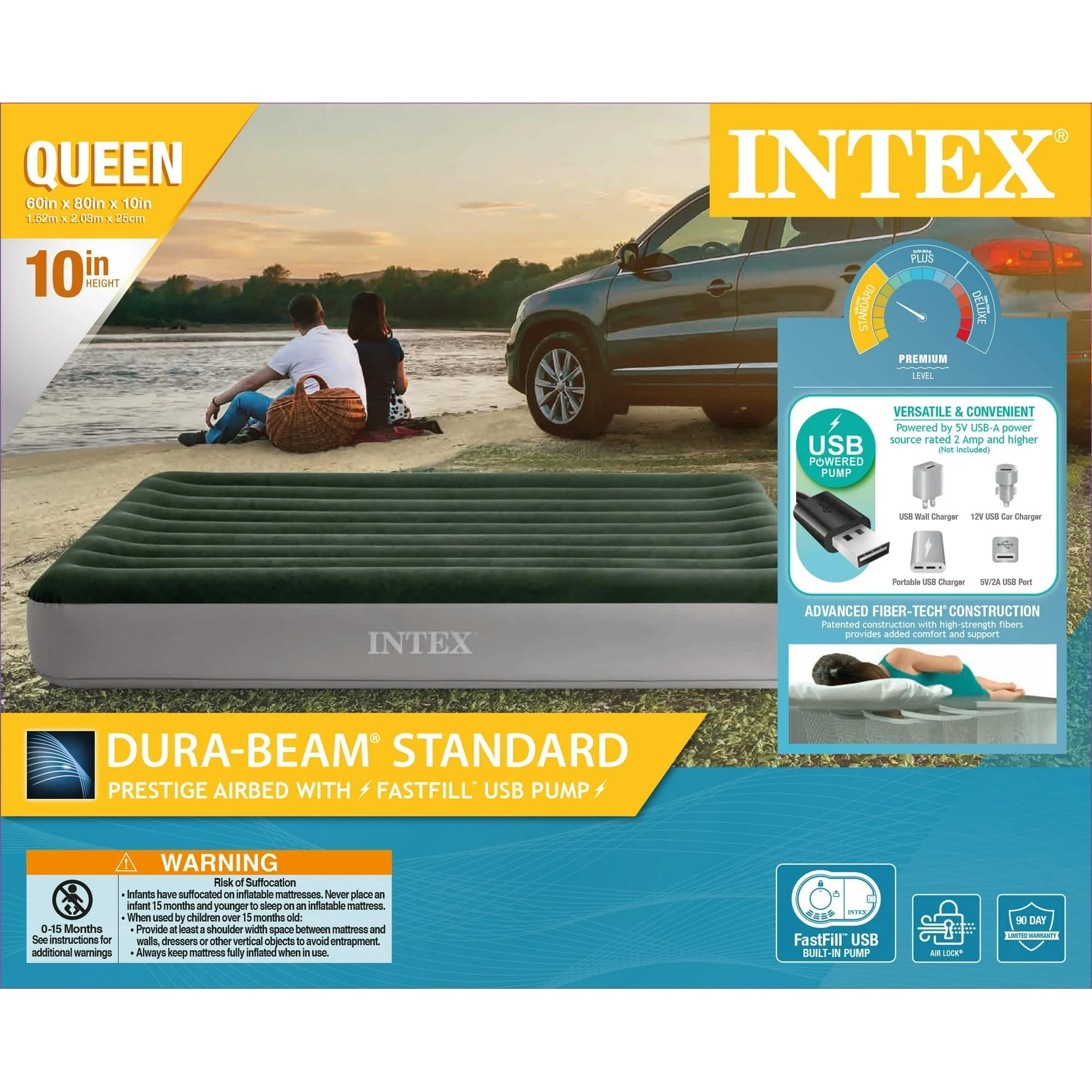 Intex 10in Queen Durabeam Prestige Air Mattress Bed with Internal Fastfill USB Powered Pump