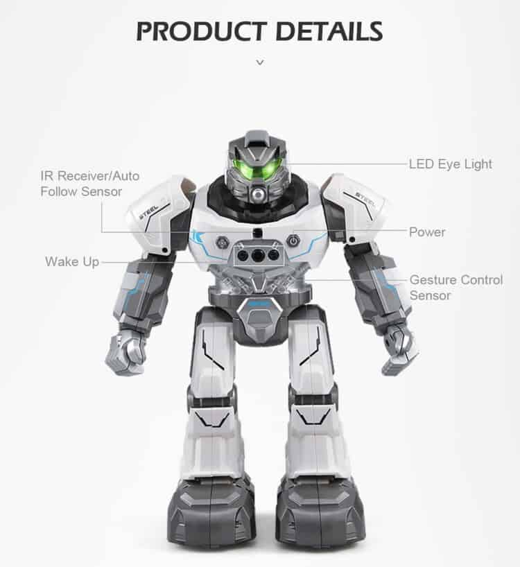 2. Gesture sensor: Its gesture sensor, working by infrared, is capable of detecting simple gesture, such as forword, backward, left turn and right turn, thus enabling kids to control the robot with a swipe of hand