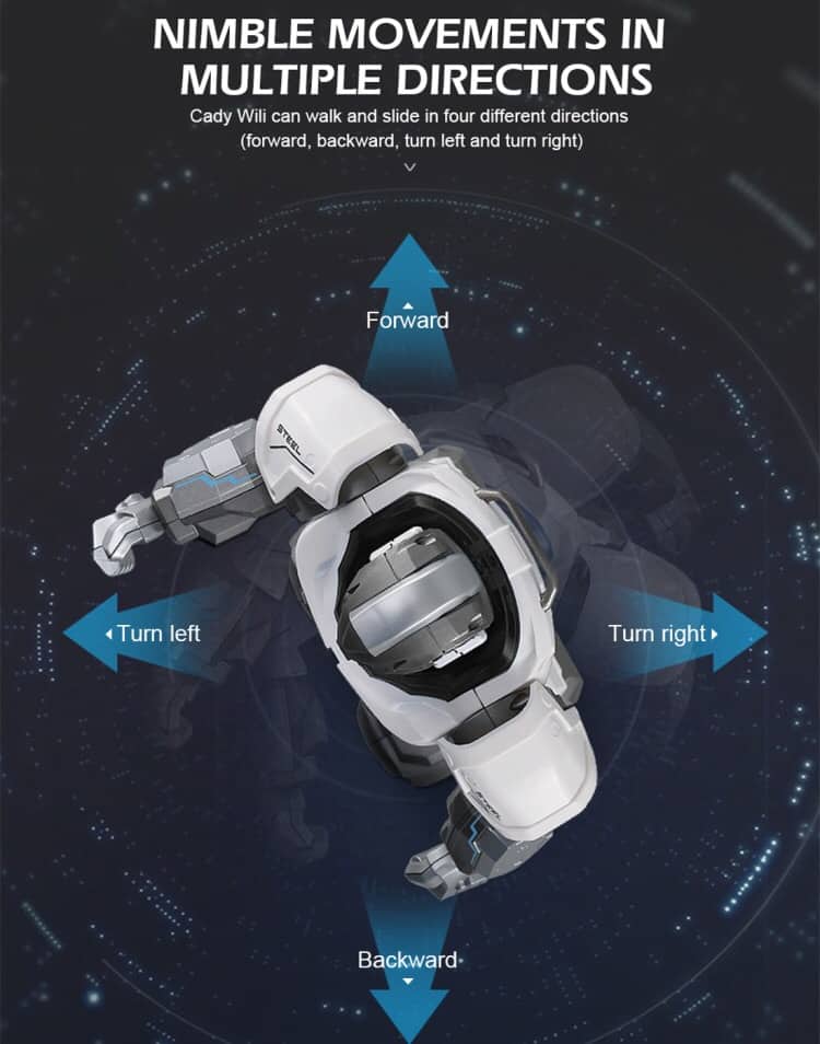 4. Nimble movements in multiple directions:cady wili can walk and slide in four different directions (forward, backward, turn left and turn right).