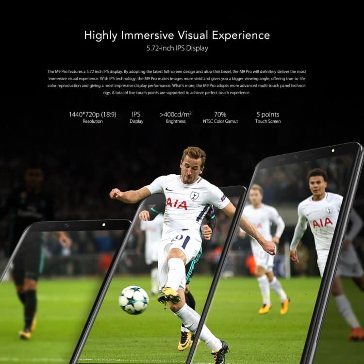 3. 5.72 inch 18:9 infinity HD+ 1440*720 IPS display, 5 points touch screen.