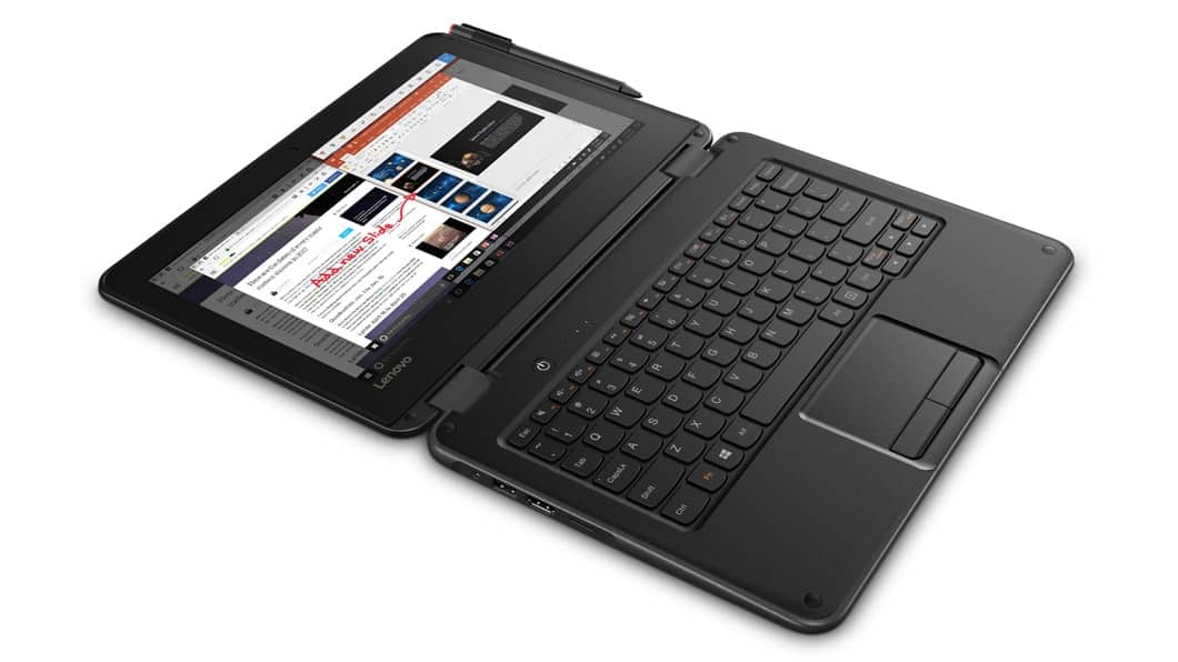 Let’s face it: Students can be tough on electronic devices. That’s why we engineered the Lenovo 300e to be durable enough to withstand the rough-and-tumble school day: from the bus ride to the classroom to the field trip and beyond. Its semi-rugged design helps ward off damage from bumps and minor drops.