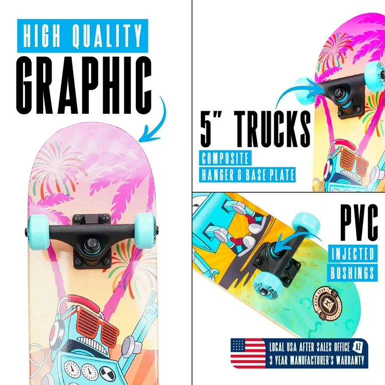 - Pre-Assembled Complete Skateboard