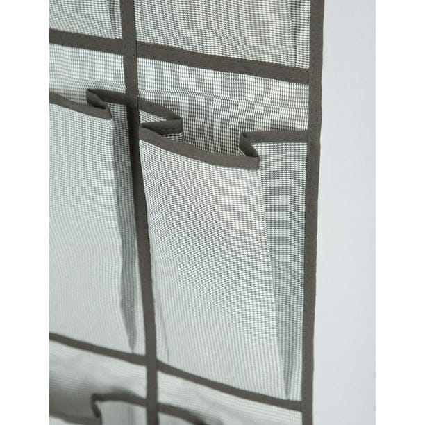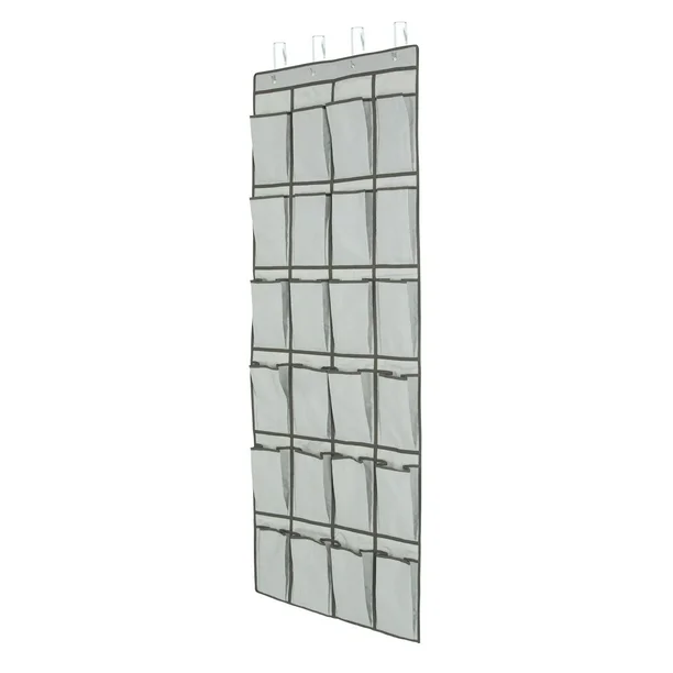 Mainstays Over the Door Shoe Organizer, Hanging Shoe Holder with 24 Extra Large Fabric Pockets for Storage Men Sneakers , Women High Heeled Shoes, and other accessories, Grey, Item size: 22 W x 1D x 63.5 H inch; Grey color