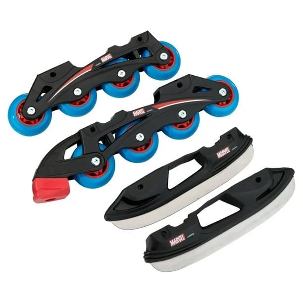 The Marvel Spider-Man Adjustable Switcher Skates are just the thing for your little Spider-Man super-fan. Decked out in authentic Spider-Man graphics, these 2-in-1 skates convert from inline to ice skates and back again with ease. The inline skates feature ABEC5 bearings and PVC 64 mm wheels, and the ice skates have a durable steel blade. The liner and foot bed add comfort while the 4 adjustable sizes lets the skates grow with your child. Get ready for super skating fun with the Spider-Man adjustable Switcher Skates.