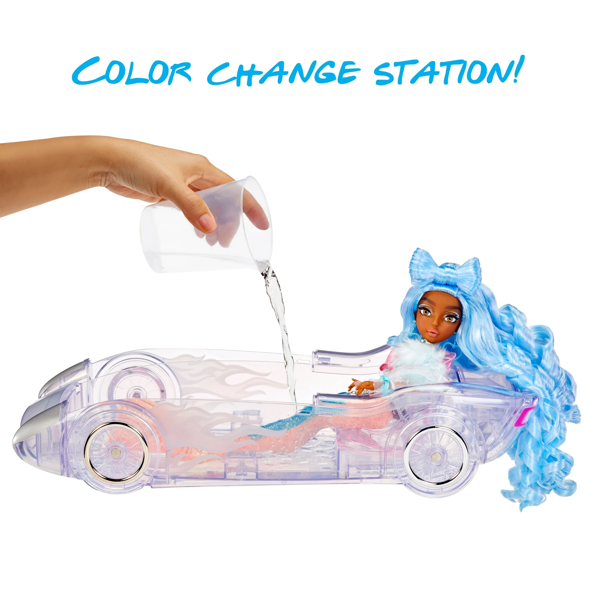 - MAGICAL COLOR CHANGE CAR: Pull up in style with the Mermaze Mermaidz Ocean Cruiser Car! The car decals perform a magical, dramatic color change when submerged in ice cold water. Watch the flame decals on the hood and doors transform from white to bright blue and pink. Color change intensity will vary depending on water temperature.
