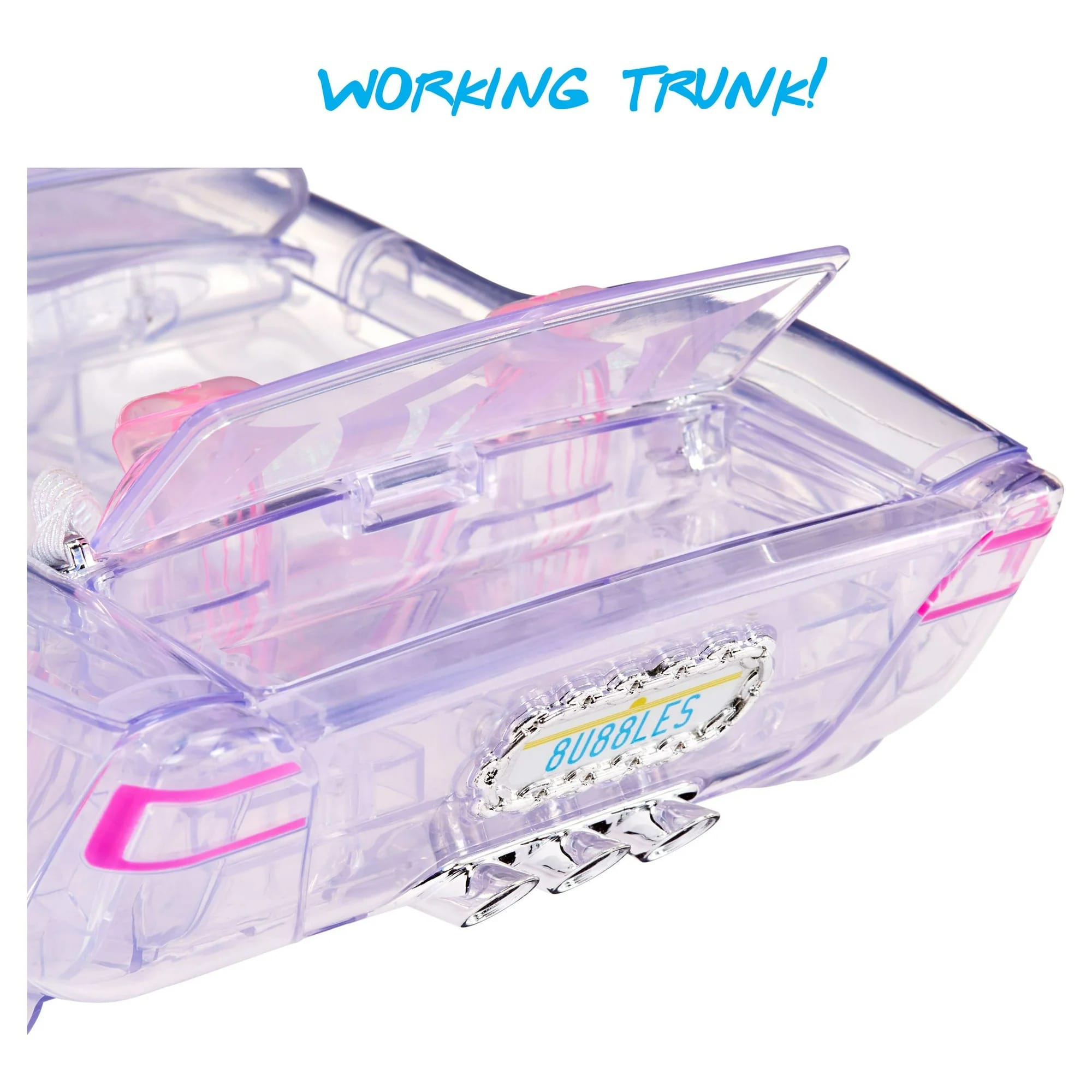 - MERMAZING DETAILS: Rolling wheels, working trunk, heart-shaped steering wheel and glitter seat belts!