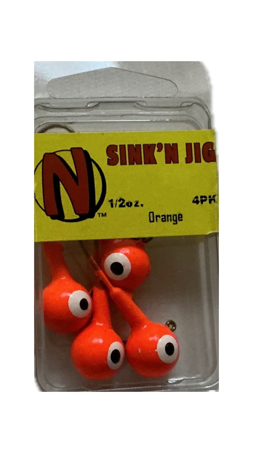 Northland Tackle Sink’n Jigs Hook 1/2 Oz 4 Pack Orange