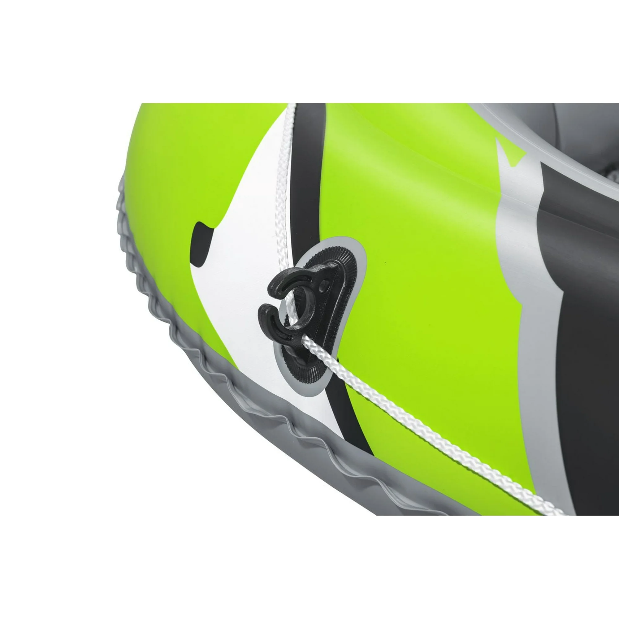 The Ozark Trail 2 person Inflatable Boat. This boat measures 7’6” x 48” (2.28m x 1.21m) and has a maximum weight capacity of 374 lbs. The boat is made of sturdy PVC material. The 3 air chamber constriction allows for an easy inflation and deflation, with the foot pump that is included with this set. The wraparound grab rope has built in gromets. This boat is sturdy, with heavy duty handles and sturdy oarlocks. The oars are 49” (1.24m), and are GS certified. This boat also includes interlocking quick release valves for easy use. The floor is inflatable for extra comfort.
