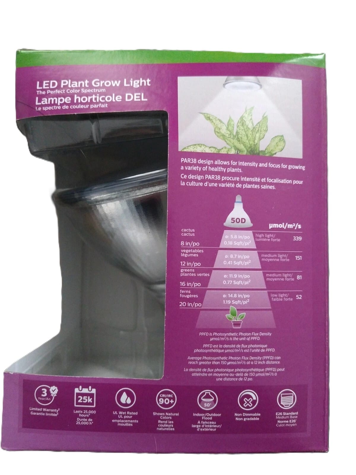 Long Life – 25,000 hours. PAR shape for intensity and focus. High photosynthetic photon flux output.