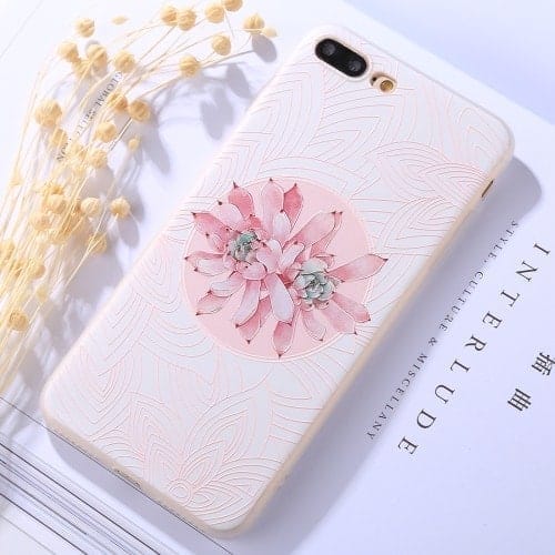 Protective Case for iPhone 8 Plus & 7 Plus Embossment Fleshy Flower Pattern Soft TPU