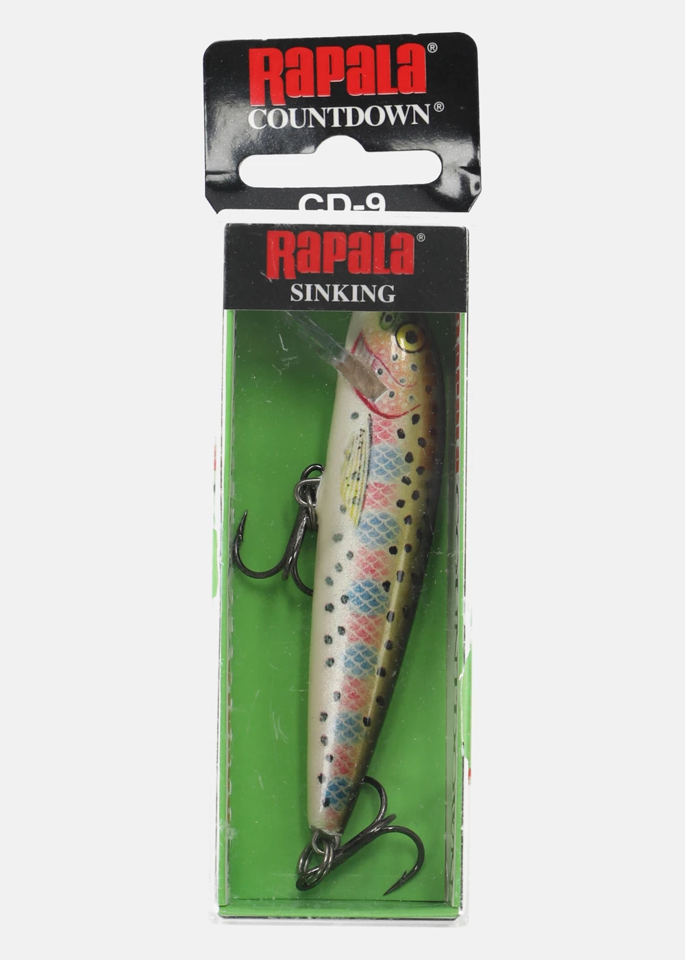 ‎1 x Rapala CountDown Lure with Two No. 7 Hooks, 1.5-2.4 m Swimming Depth, 9 cm Size, Balsa Juvenile Rainbow Trout |