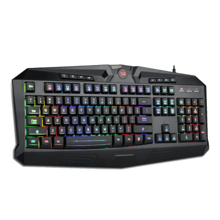 • RGB BACKLIT GAMING KEYBOARD: Redragon LED RGB Keyboard: 4 backlight color effects, 5 levels backlight breathing speed, Ergonomic designed keyboard with 104 keys, 25 keys without conflict, 12 multimedia keys, 8 independent control keys for quick management, splash-proof, WIN key can be disabled for gaming. Laser-engraved keys, 5 foot high-speed USB cable, 3mm diameter high-strength braided fiber cable