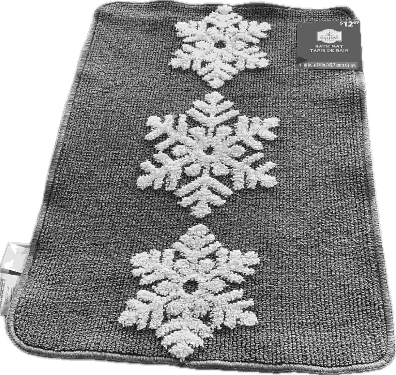 Add a festive seasonal touch to your home with this Snowflake Rug Collection. All the rugs feature white snowflakes on a gray background.