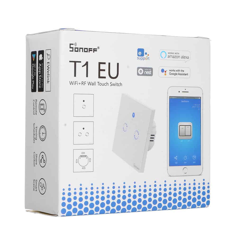 SONOFF T1 EU AC90V-250V 600W Smart WIFI Wall Touch Light Switch 2 Gang Touch/WiFi/433 RF/APP Remote Smart Home Controller Work With Alexa – 2CH