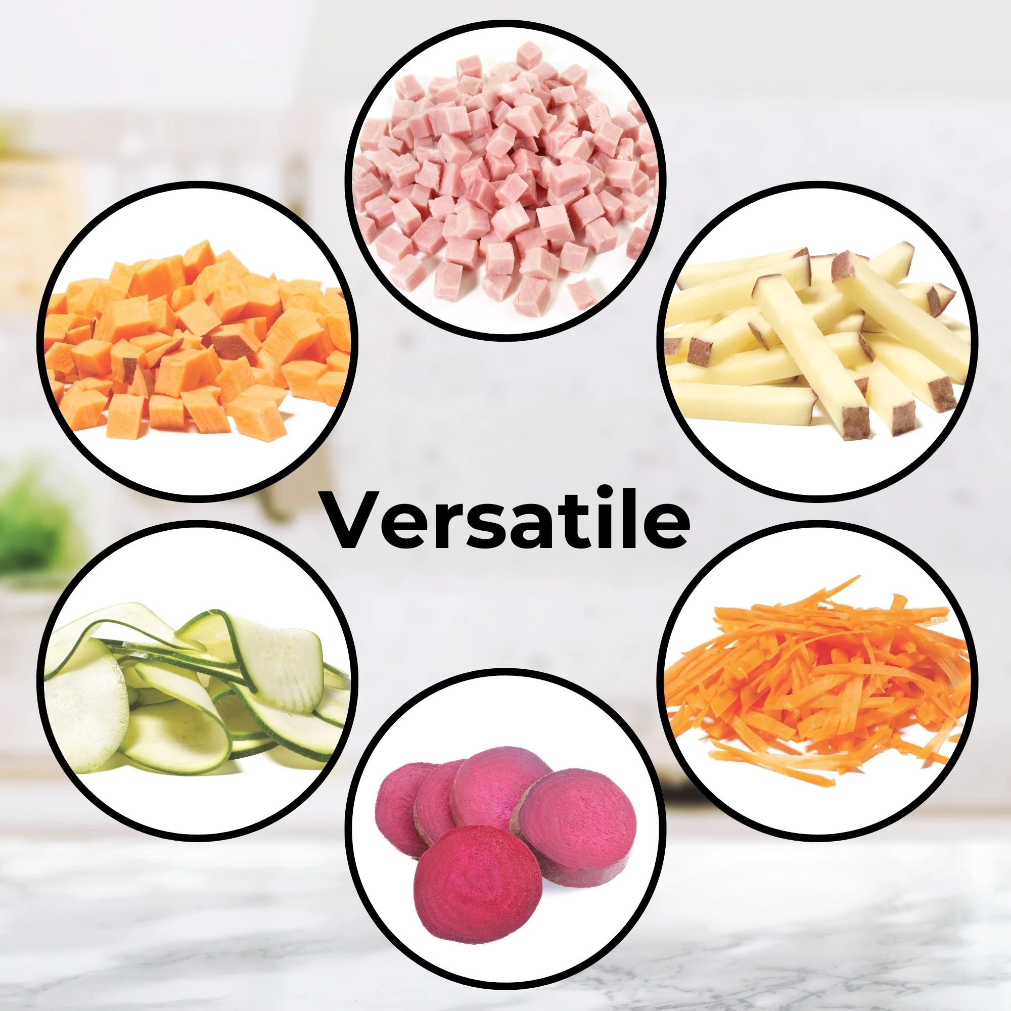 - Adjustable Cuts: Choose slice thickness from 0.5 mm to 8 mm and make julienne or diced cuts.