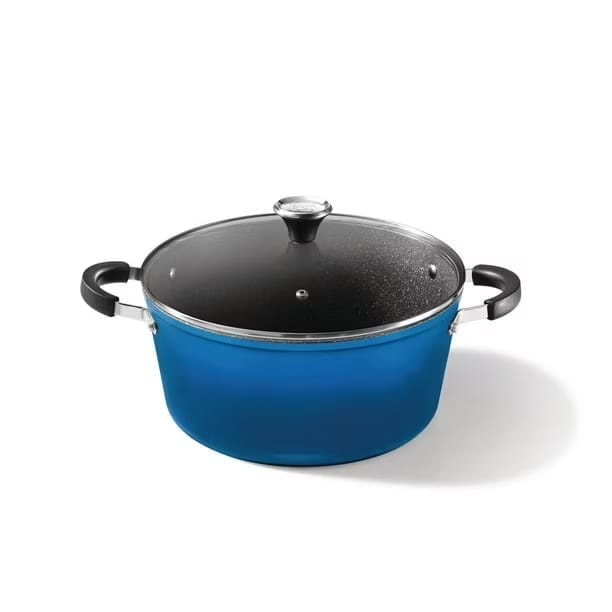 The Starfrit The Rock One Pot 7.2 Qt Stock Pot is designed for versatility and durability in the kitchen. Crafted from heavy-duty aluminum, it ensures even heat distribution for perfect cooking results every time. The unique Rock.Tec technology provides a reinforced non-stick surface, making it easy to release food and clean up afterward. The pot features a tempered glass lid that allows you to monitor your cooking without losing heat. Its spacious 7.2-quart capacity is perfect for preparing soups, stews, and large meals, while the ergonomic handles ensure a comfortable grip. Suitable for all stovetops, including induction, this stock pot is an essential addition to any kitchen. (Bonus Recipe book included).