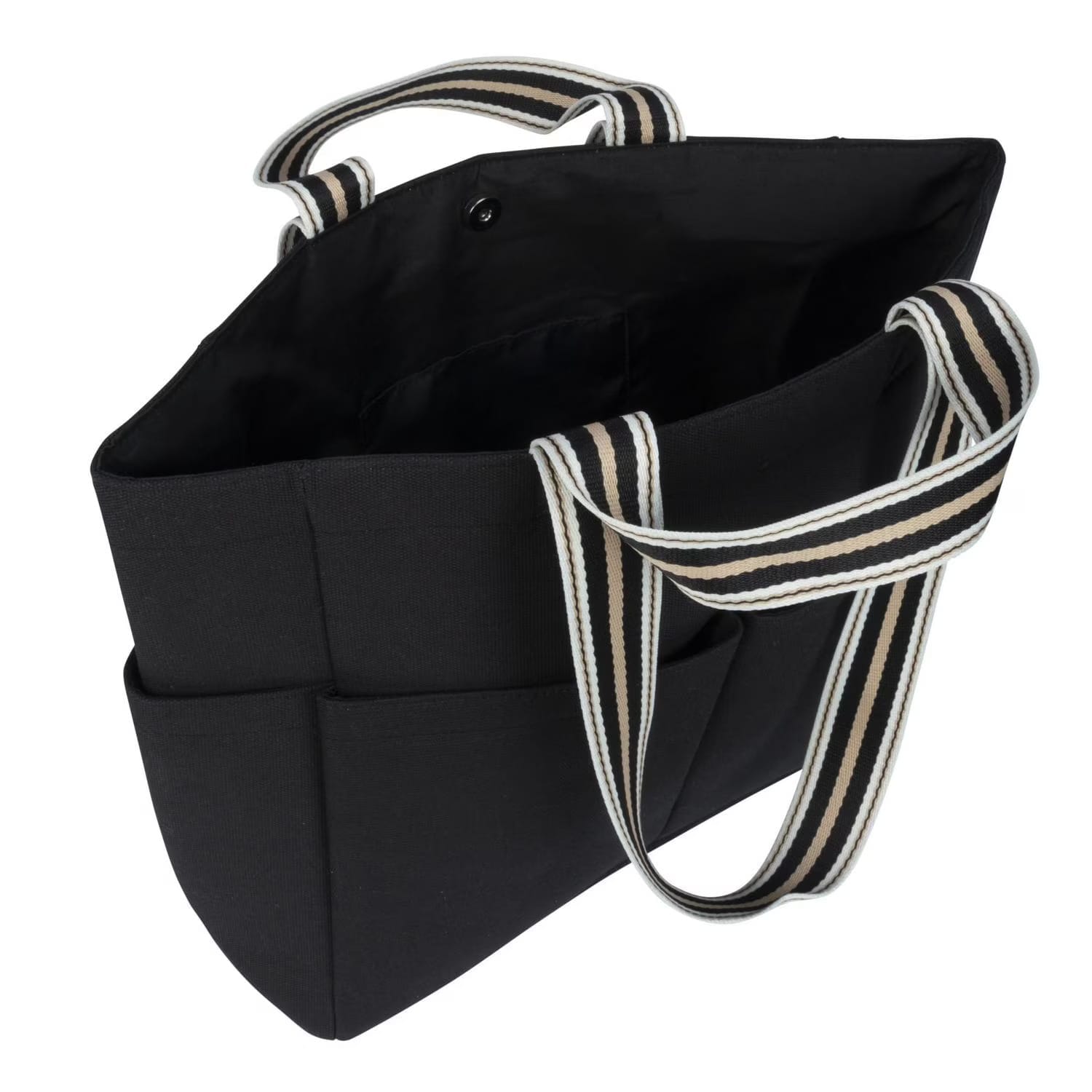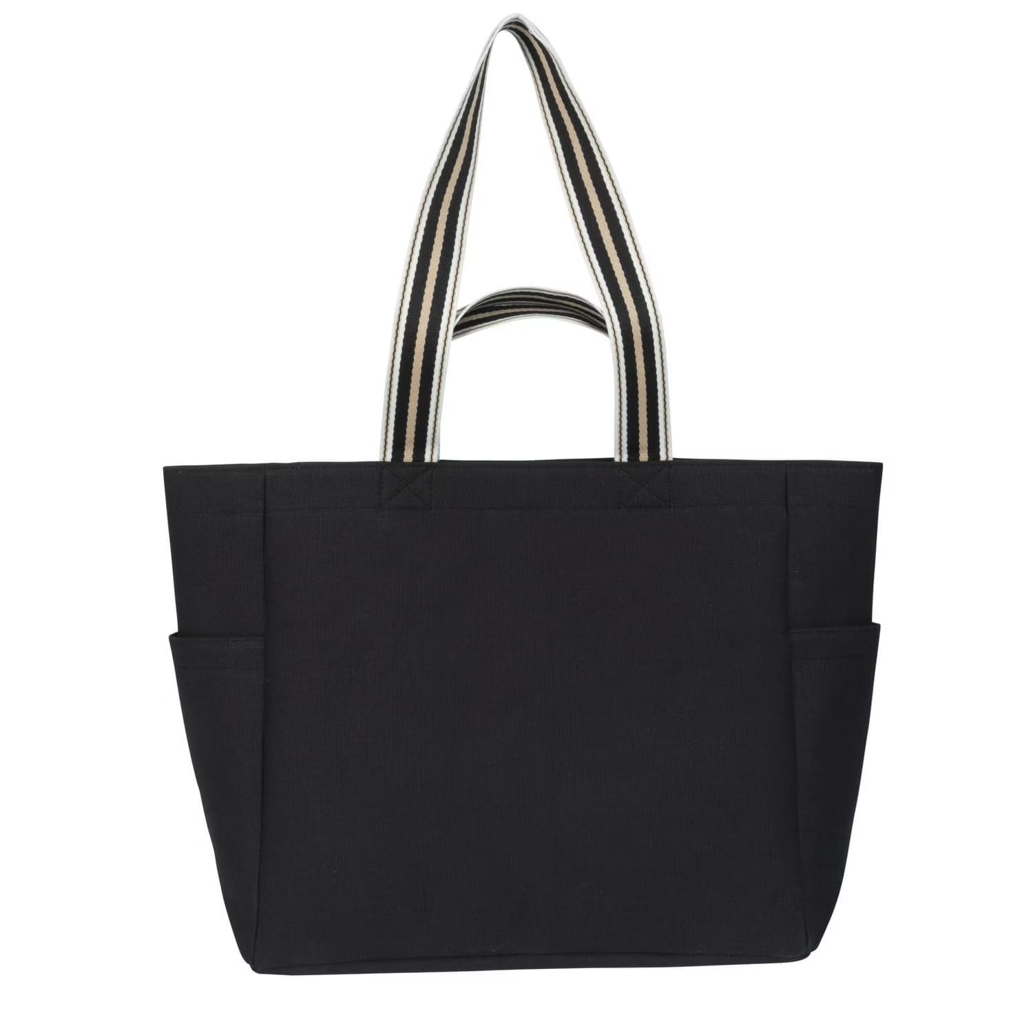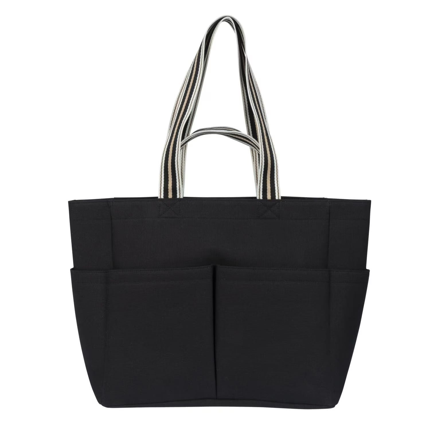 The Darlene Double Handle Tote meets all your needs for a prepped and packed beach day. This bag’s carry-all design has a deep interior and keeps your essentials easily accessible anytime. Secure your sunglasses, sunscreen, water bottle, bathing suit, towel and other belongings with the snap closure. Store smaller items in the front pockets, side pockets, or small interior pocket. Its long, multi-colour straps can be worn over the shoulder, while the shorter straps fit in hand. This lightweight tote can be a great addition to your next trip, weekend getaway, picnic or vacation.