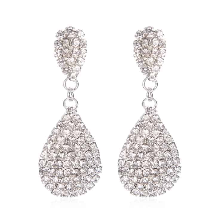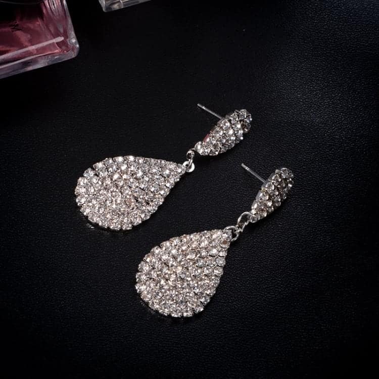 Water Drop Shaped Women Dangle Earring 1 Pair Fashion And Luxury Inlaid Top Quality Rhinestone Around (Silver)