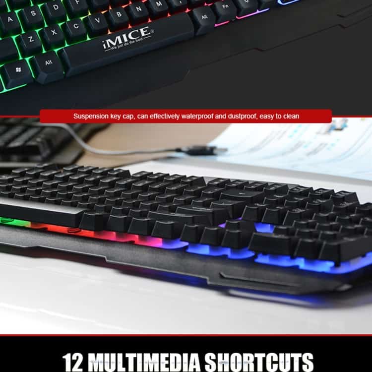 Wired Colorful Backlight Gaming Keyboard iMICE AK-400 USB Interface 104 Keys for Computer PC Laptop (Grey)