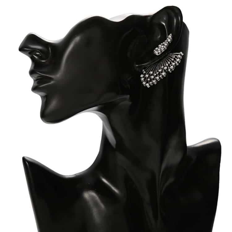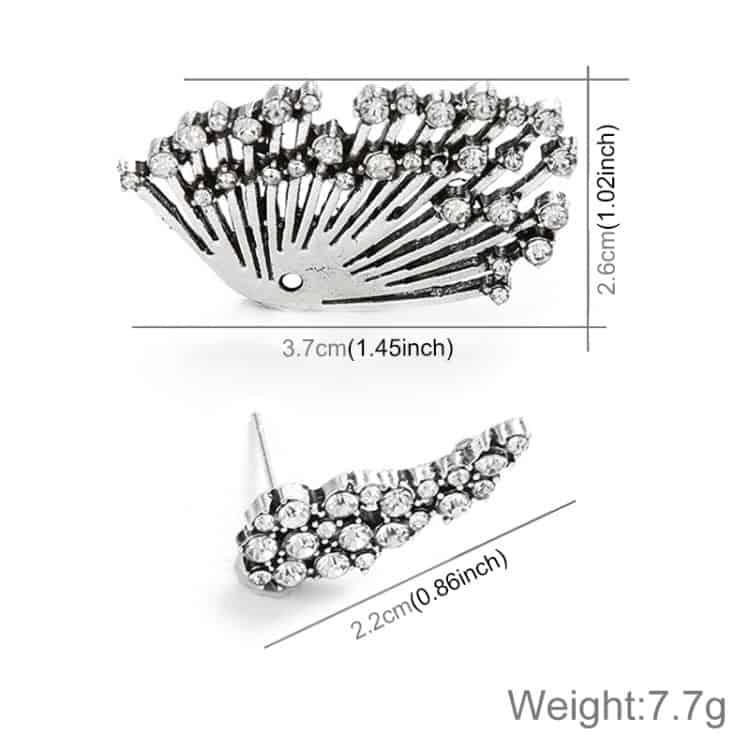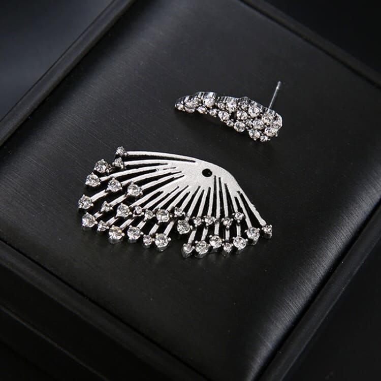 Women Diamond-shape Silver Flower Fan-sharped Asymmetric Stud Earrings