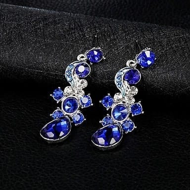Wreath Necklace Long Earrings for Ladies Fashion Prestige Temperament Rhinestone Jewelry 2PCs Set (Blue)