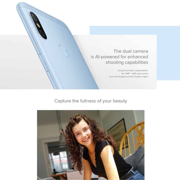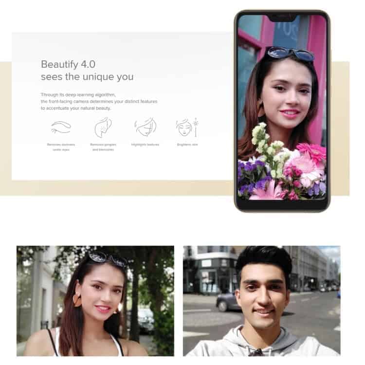 5. 5MP front camera: F2.0 large aperture, 67.9 degree wide-angle lens, HDR, AI powered portrait mode, Beautify 4.0, face recognition.